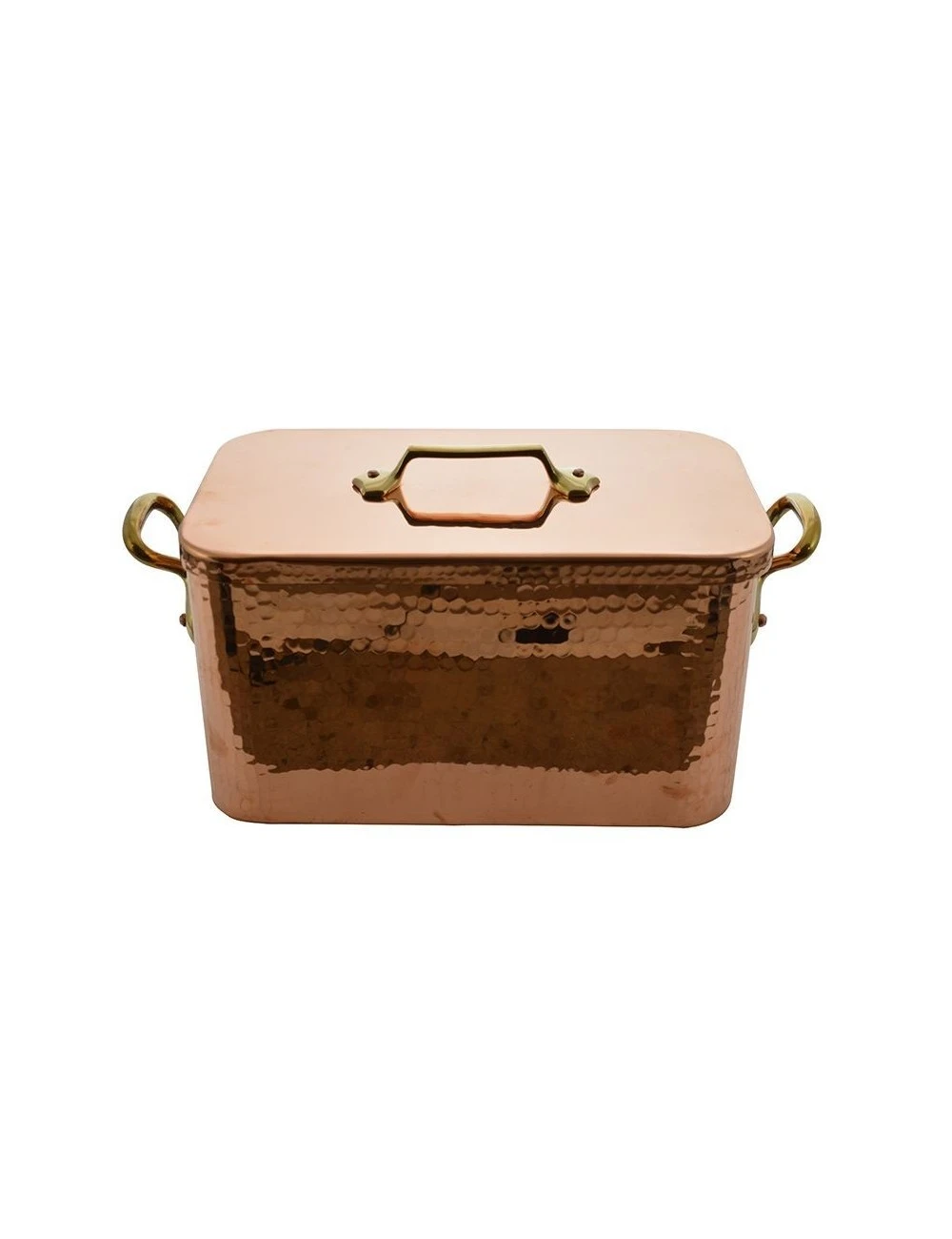 Braisière cuivre étamé, monture bronze, couvercle cuivre. Le cuivre et l’étain forment un couple très homogène et permettent une parfaite conduction de la chaleur. Attention toutefois : l’étain peut se détériorer à sec dès 230 °C. L’ustensile idéal pour cuire longuement au four une viande dans son jus. Le couvercle limite l’évaporation afin que la viande ne se dessèche pas.