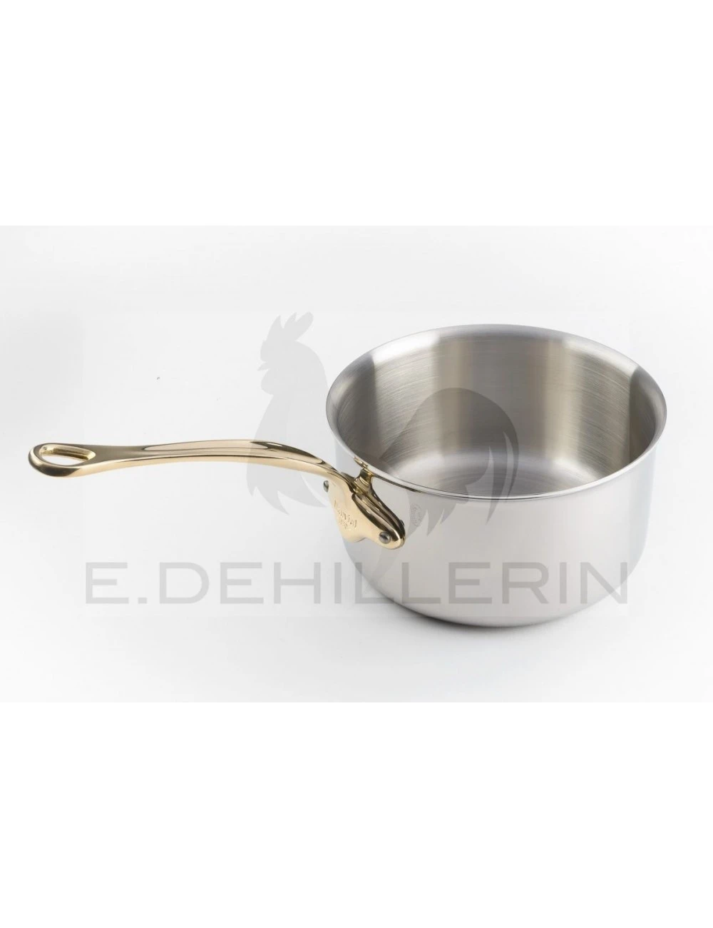 Casserole acier inoxydable, monture bronze. Ustensile techniquement évolué et bon conducteur de chaleur. Compatible tous feux dont induction. Sa queue bronze lui confère un certain cachet mais ne convient pas aux mains sensibles.
