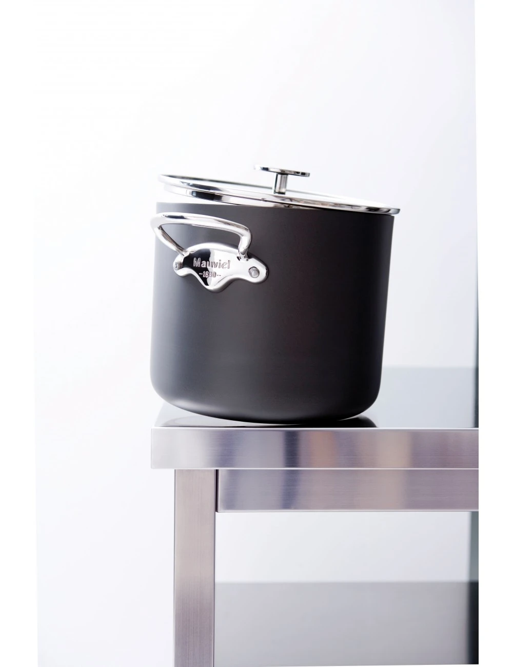 Marmite en aluminium anodisé, intérieur céramique, monture fonte d’inox, couvercle aluminium. Ustensile au look contemporain, intérieur antiadhésif. Compatible tous feux dont induction. Diamètre 24 cm.