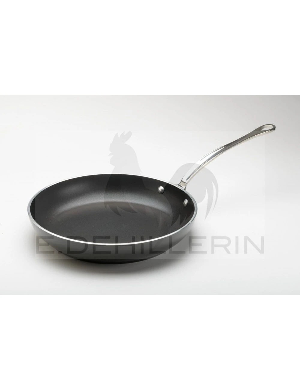 Poêle ronde en aluminium anodisé, revêtement antiadhésif, monture fonte d’inox (monture froide). Le revêtement antiadhésif permet de limiter l’apport de matière grasse. Son look contemporain s’accorde aux cuisines modernes. Compatible tous feux dont induction.